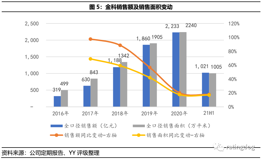 2021年1-6月,金科及所投資的公司實現銷售額約1,021億元,同比增長17.6%;銷售面積約1,005萬平方米,同比增長16.9%。按照2021年銷售目標計劃(不低于2,500億元),上半年完成全年目標的41%。下半年是發力推盤還是動態調整銷售目標仍需觀察。在合作開發成為行業趨勢的背景下,公司權益銷售比下滑到70%左右,仍保持較高水平。在公司推行的一年現金流回正的“高周轉”策略下,2020年回款率達到90%。21年一季度未披露銷售回款,但是對比銷售商品、提供勞務收到的現金和公司的權益銷售額,占比約71.9%,雖然低于2020年水平,但縱向來看波動不大。土地儲備方面,截至21年3月末,公司全口徑剩余可售建筑面積為7,145.48萬平方米,較2020年末基本持平,按2020年簽約銷售面積估算,可支撐未來3年銷售,土儲充足。但正如YY對金科的深度報告所述,公司在2019年擴張中選擇加大城市下沉,導致尚存較大比例土儲位于三線及以下城市。截至21年3月末,公司一二線土儲占比約59%(以二線為主),三線及以下城市土儲占比約41%。低能級城市購買力伴隨棚改紅利褪去,去化面臨一定壓力。邊際來看,2020年至今,公司有意提升拿地城市能級;新增土地儲備按權益計容建筑面積計算,2020年二線(含新一線)城市占比約66%,21年Q1比例提升至84%。區位布局上,公司2021Q1在重慶新增22萬平方米權益計容建面,在4月份的首批集中供地土地拍賣中也有所斬獲,在房企競爭中排名第6。其他主要的投拓項目位于貴陽經開區(離城區較遠)、南寧市的青秀區和綜合保稅區、太原市清徐縣和淮安市清江浦區等。僅從2021Q1新獲土儲來看,公司保持了大本營重慶的優勢,但在其他城市的土儲質量則存在分化,不應僅以城市能級作為評判標準。4.2 表內外債務風險