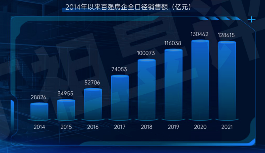 事實上,過去五年,房企過度追求規模,為現在的危機埋下了最大的伏筆。對于規模的追求是過去幾年的主旋律,也許當時不一定是錯誤的,但是今天回過頭來,過去5年最大的內因還是在于房企過度的追逐了規模。近五年,百強房企新進城市數量占比超過50%,2014年以來,百強房企全口徑銷售額年復合增長率達到25%。