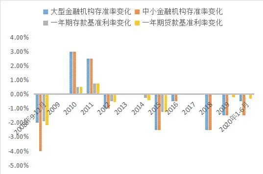 圖3.2008年9-12月至2020年1-6月法定存款準備金率