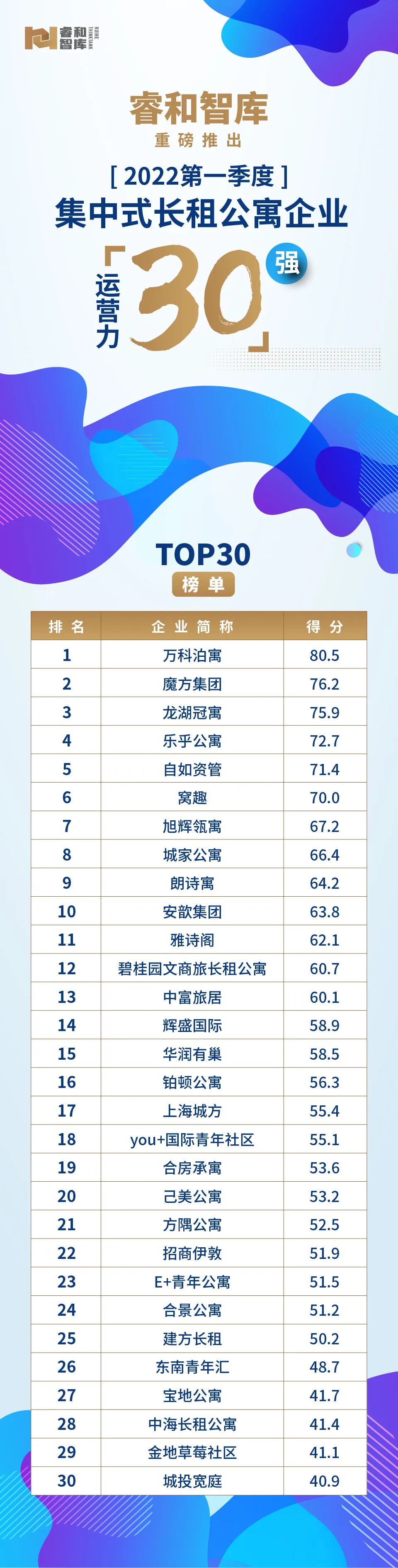 圖2:2022年Q1TOP30集中式長租公寓運營企業(yè)背景情況
