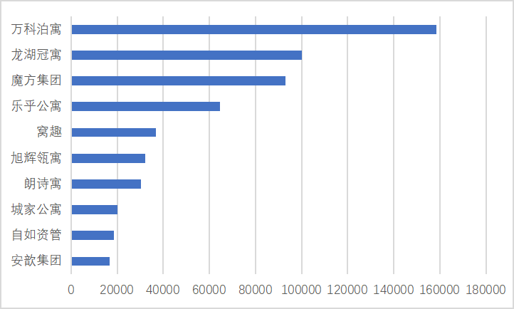 圖1:2022年Q1TOP10集中式長租公寓運營企業(yè)累計在營房間規(guī)模(單位:間)