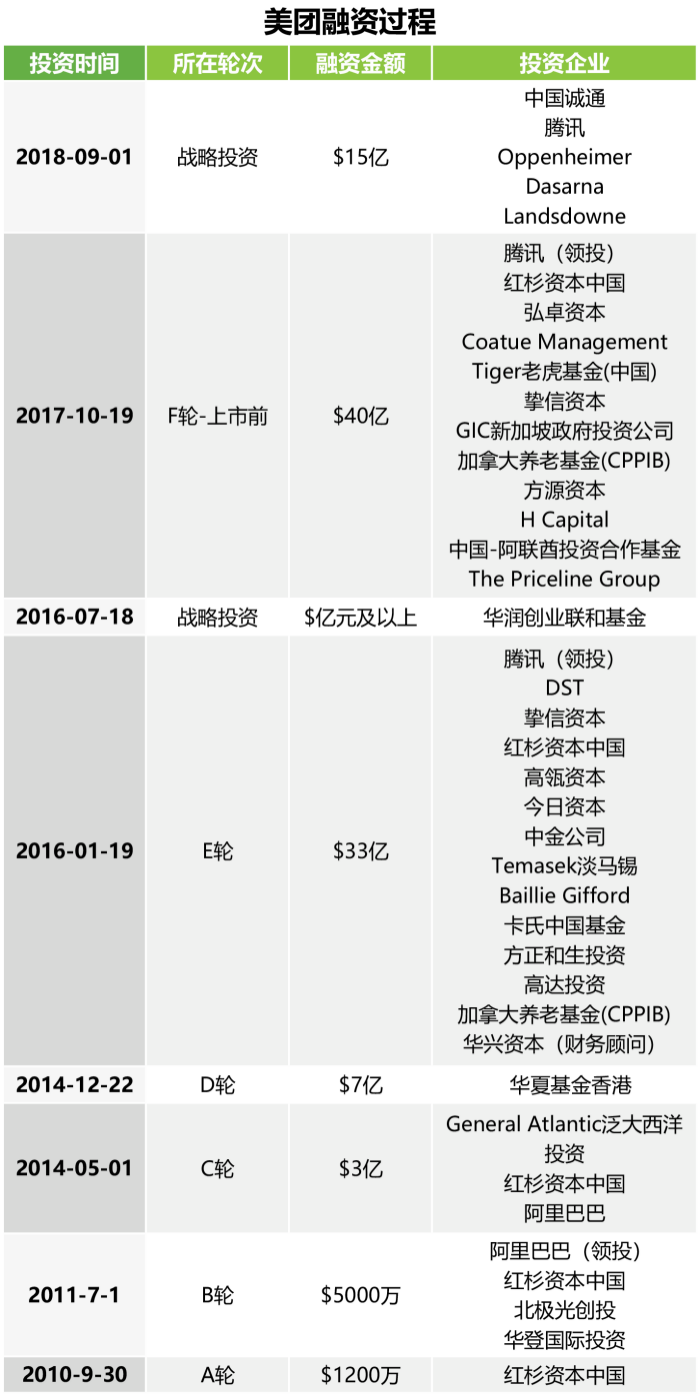 (美團上市之前的融資整理,來自艾瑞網(wǎng))