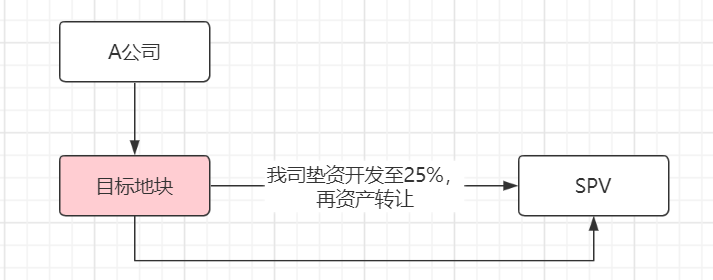 1.【直接資產轉讓】:我司成立SPV公司,用以受讓目標地塊的土地使用權;但由于當地政府對于投資額25%的要求限制,我司要求A公司將土地使用權抵押給我方,然后由我司墊資開發至轉讓要求后轉讓土地使用權。這種方式流程周期較長,且不可控因素較多。。