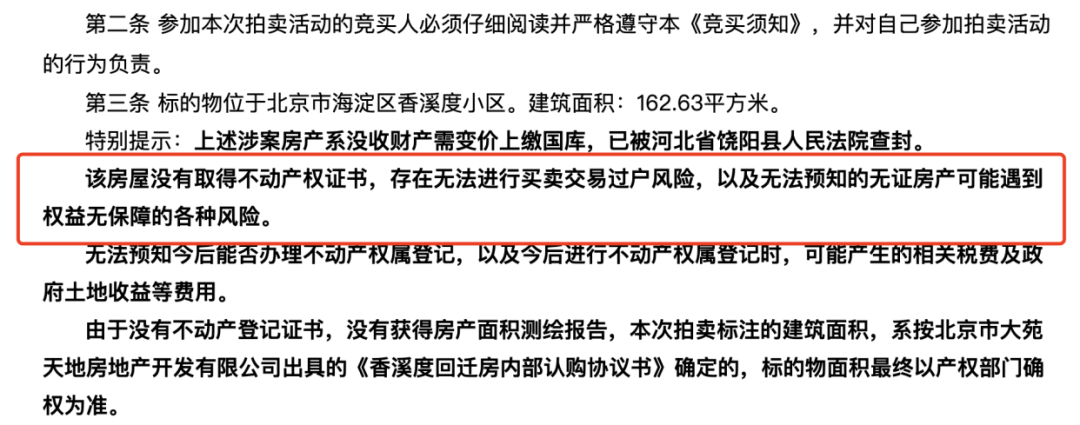 雖然看似跟羅先生一樣撿了大便宜,但是該競買人可能不知道的是該套房源沒有取得不動產(chǎn)權(quán)證書。同樣的在競買須知中,法院對此情況已經(jīng)做了說明,所以競買人需要為自己的決定負責。