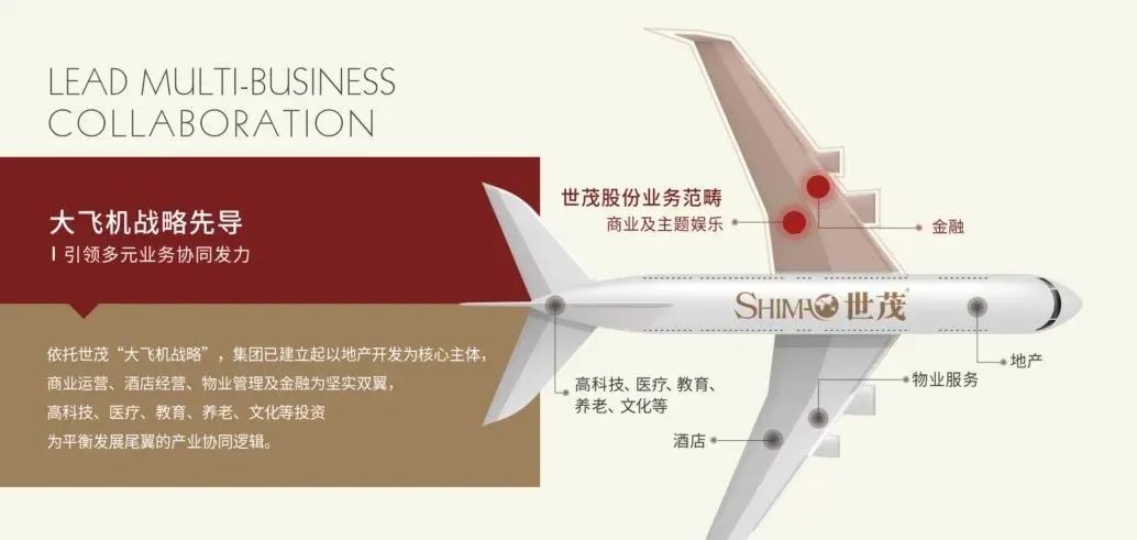 依托世茂的“大飛機”戰略,集團已建立起了主體+雙翼+尾翼的產業協同邏輯。
