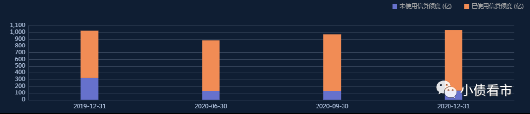 在備用資金方面,截至2020年末,鉅盛華銀行授信總額有1034.57億元,未使用授信額度為139.31億元,可見其財務彈性欠佳,面臨一定債務融資壓力。