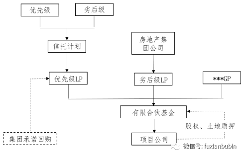 如果需要進入較為穩健的大量資金,還需要集團予以承諾回購,并提供股權、土地的質押,其交易結構基本如下: