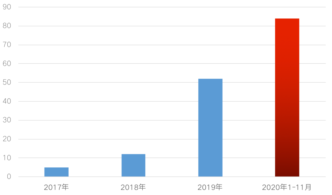 圖:2017年-2020年11月長(zhǎng)租公寓企業(yè)爆雷數(shù)量