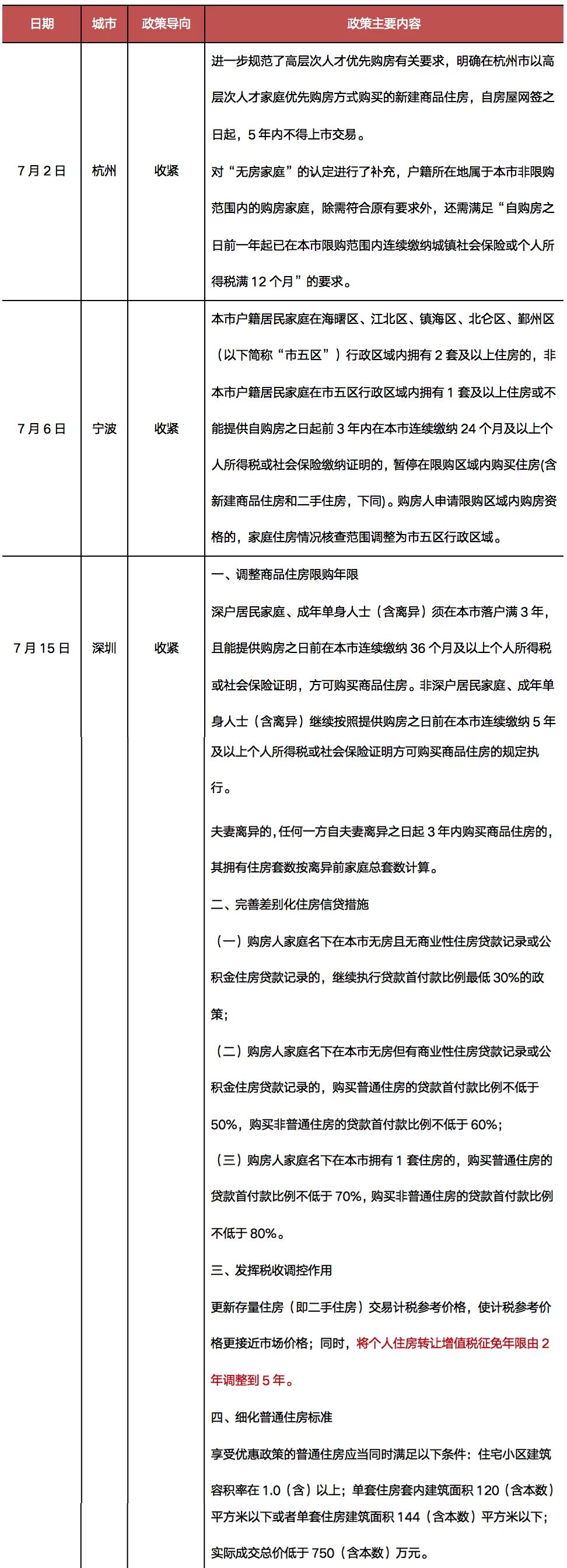 7-8月份,參加國務院、住建部座談會的城市名單一共有14個,包括北京、上海、廣州、深圳、南京、杭州、沈陽、成都、寧波、長沙、長春、銀川、唐山、常州。其中,沈陽和成都參與了兩次座談會。目前已出臺收緊樓市調控的城市已有7個,分別為深圳、南京、杭州、寧波、沈陽、常州和成都。