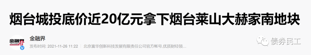 2021年11月26日,煙臺藍(lán)天投資開發(fā)集團(tuán)有限公司的子公司煙臺市城市建設(shè)投資有限責(zé)任公司以19.67億元的價(jià)格摘得煙臺萊山大赫家南地塊總出讓面積為300畝的土地,土地性質(zhì)為住宅用地。