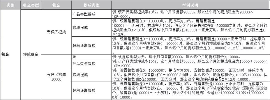 (二)提成租金(也稱為:扣率租金、扣點租金或抽成租金)