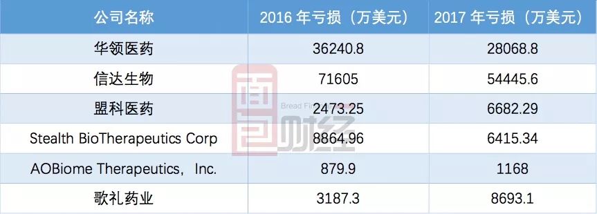 以AOBiome為例,公司自2012年成立至今,由于沒有新藥進入到商業(yè)化階段,所以暫時沒有盈利,而公司所研發(fā)的新藥最早要到2020年年底才能上市。換句話說,未來還有三年左右的時間公司仍會處于持續(xù)虧損的狀態(tài)。