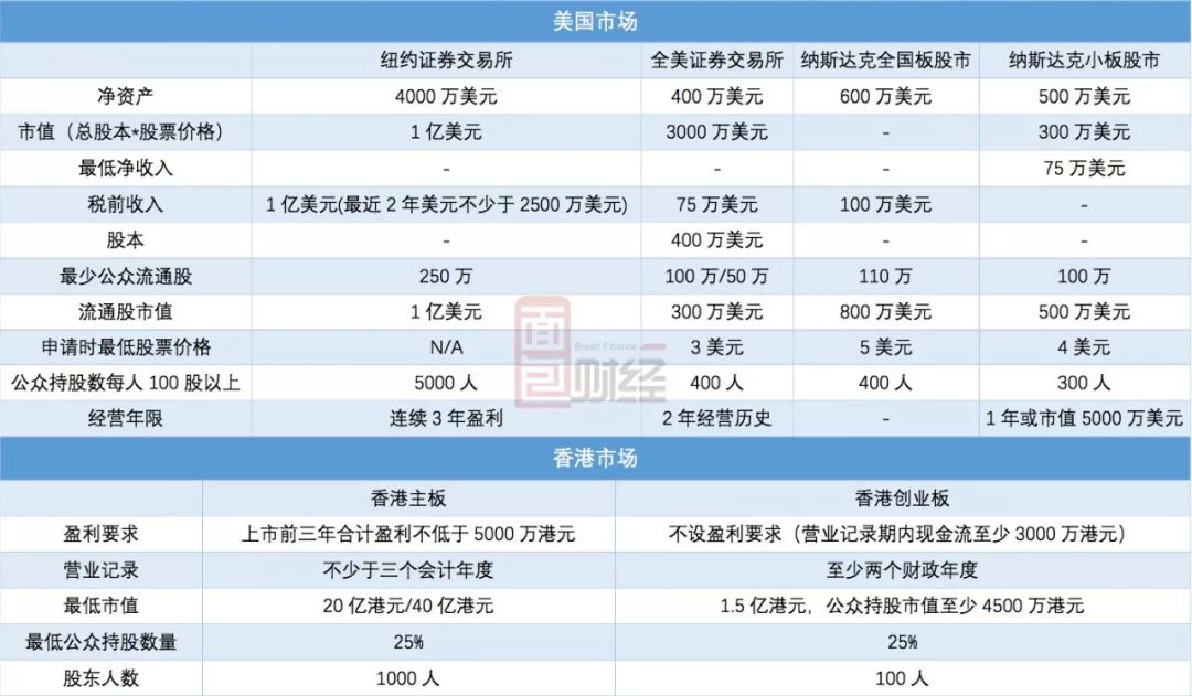 我們先來簡單看一下兩個市場的發(fā)行要求: