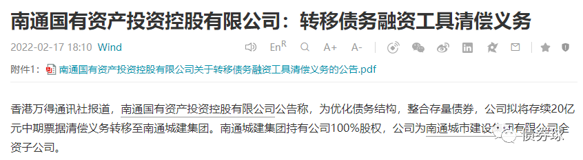 今天看到南通國有資產(chǎn)投資控股有限公司(以下簡稱“南通國資”)關(guān)于轉(zhuǎn)移債務(wù)融資工具清償義務(wù)的公告,大致情況是計劃由發(fā)行人母公司,南通城市建設(shè)集團(tuán)有限公司,承繼發(fā)行人發(fā)行的相關(guān)中票的償付義務(wù)。筆者不禁聯(lián)想到城投債務(wù)的控制問題。