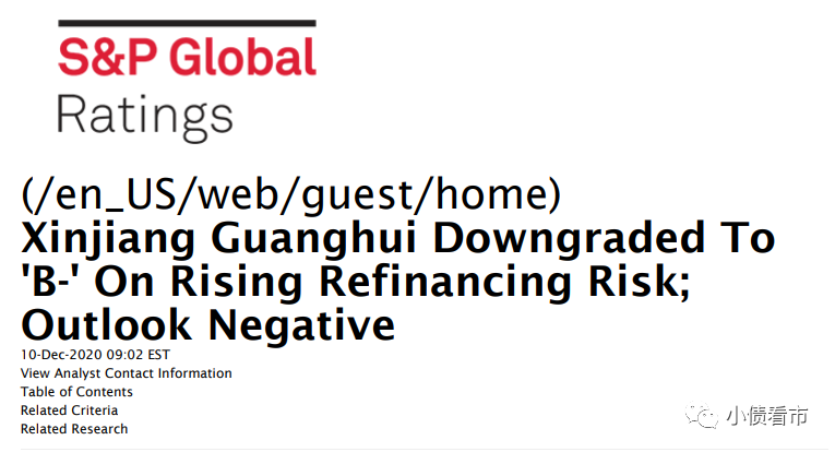 12月10日,標(biāo)普?qǐng)?bào)告稱(chēng),將新疆廣匯實(shí)業(yè)投資(集團(tuán))有限責(zé)任公司(以下簡(jiǎn)稱(chēng)“廣匯集團(tuán)”)的長(zhǎng)期發(fā)行人信用評(píng)級(jí)從“B”下調(diào)至“B-”;同時(shí)將其高級(jí)無(wú)抵押票據(jù)的長(zhǎng)期發(fā)行評(píng)級(jí)從“B-”下調(diào)至“CCC+”。