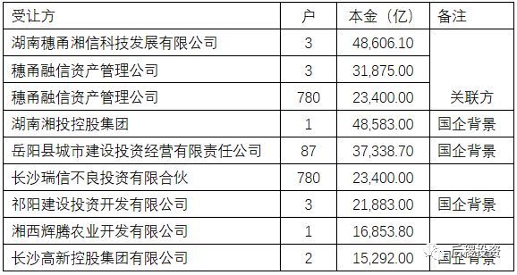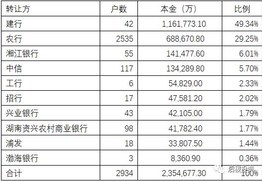 受讓方 | 戶數(shù) | 本金(萬(wàn)) | 比例 |