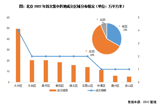 從地塊的區(qū)域分布來看,近郊區(qū)持續(xù)成為北京土地供應(yīng)的主力區(qū)域:大興區(qū)共成交4宗地,總建面達(dá)到49.27萬平方米,位列第一名;其次昌平區(qū)、順義區(qū)、通州區(qū)和房山區(qū)均有地塊出讓,近郊供應(yīng)面積共計96.72萬平方米,占60%。