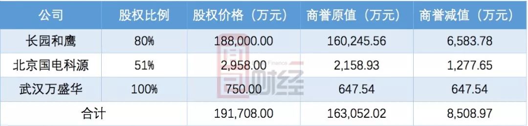 其中,武漢萬盛華雖然計提的數額不大,但卻是全額計提,而商譽減值數額最大的為長園和鷹。