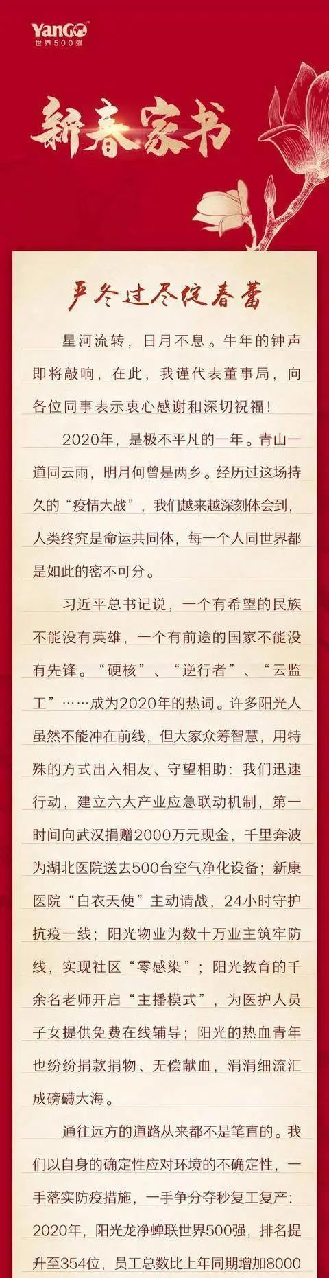 2021年初,林騰蛟在陽光城的官網(wǎng)上向員工群發(fā)了一封家書。