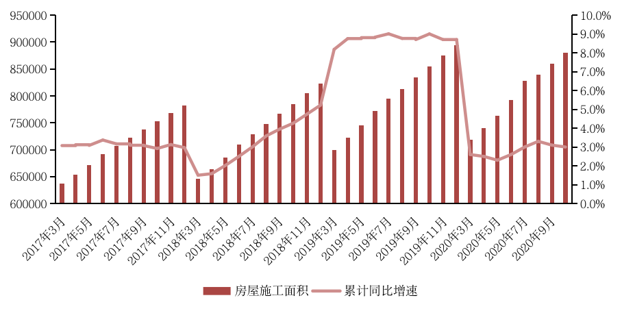 我們認為,這主要得益于房企對于房屋新開工為主的建安投資的投入。與此同時,出于備貨沖刺年底銷售回款的準備,房企加大了房屋新開工面積。