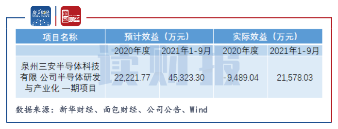 三安光電在投項(xiàng)目泉州三安一期項(xiàng)目雖已投入大量資金,但其達(dá)產(chǎn)狀態(tài)及實(shí)際收益不及預(yù)期受上交所問詢。2020年度、2021年1-9月,公司泉州三安一期項(xiàng)目預(yù)計(jì)達(dá)產(chǎn)率分別為21.19%、43.35%,實(shí)際達(dá)產(chǎn)率分別為3.73%、17.27%,達(dá)產(chǎn)情況遠(yuǎn)未及預(yù)期。