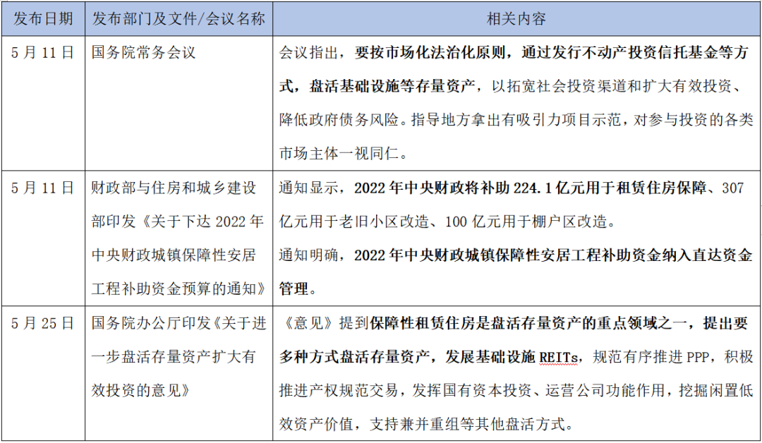 表1:2022年5月國家層面租賃住房相關重點政策匯總