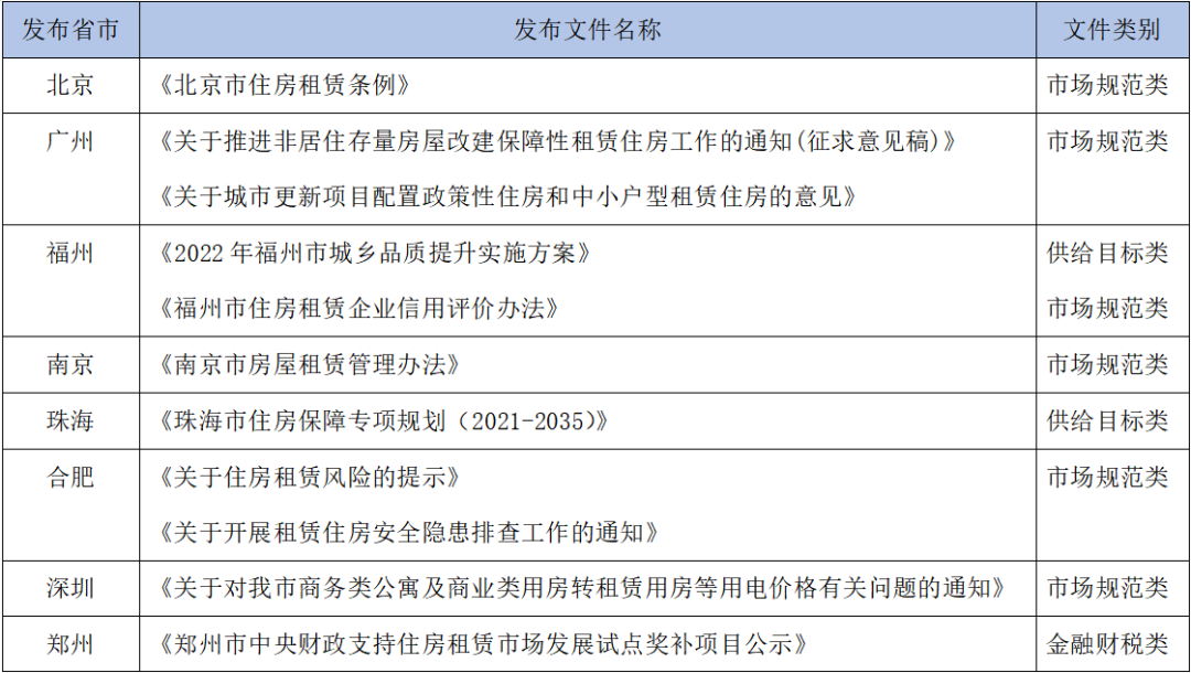 表2:2022年5月各地租賃住房相關重點政策匯總