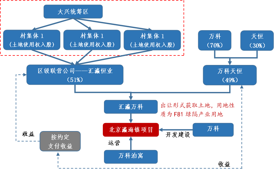 路徑1:集體經濟組織(經濟合作社或股改后的有限公司)與國企共同聯合開發整體租賃住房。以北京市為例,集體經營性建設用地使用權入市采取區(鎮)級統籌方式,同時明確規定:集體經濟組織在新成立的企業持股比例不低于51%,且應有保底分紅。