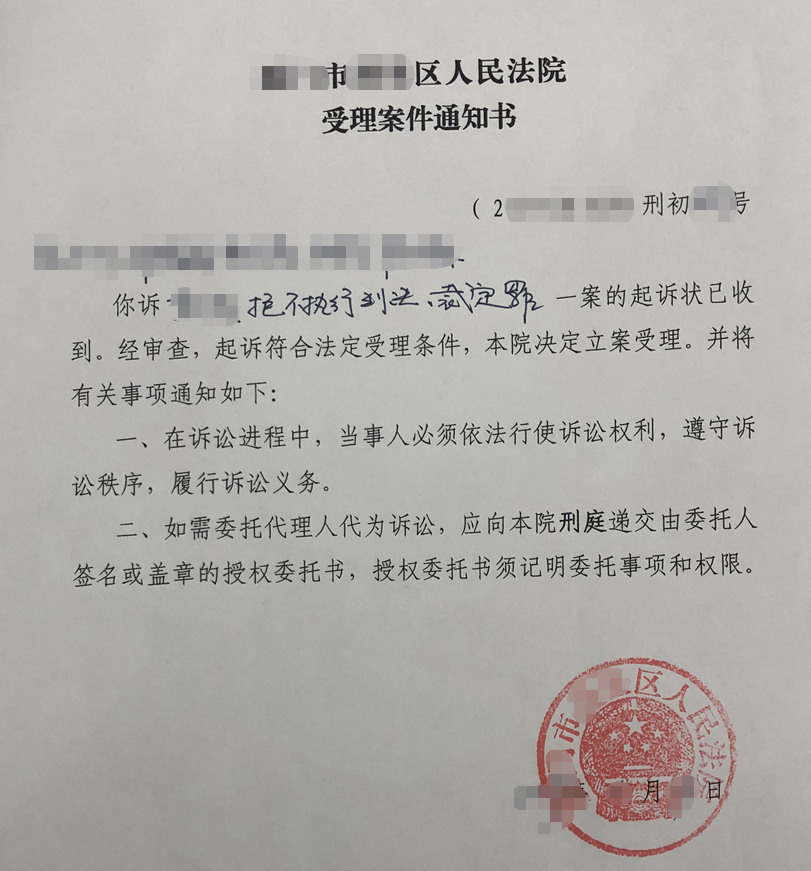 于是,我們立即改變方案,選擇提起刑事自訴。向管轄的公安部門提出控告,經過多輪的座談、溝通,取得不予立案受理通知書,最終在管轄法院成功立案。過程曲折,但在做好充分、扎實的準備工作,有充足的法律依據下,自訴的方案是可行、有效的。
