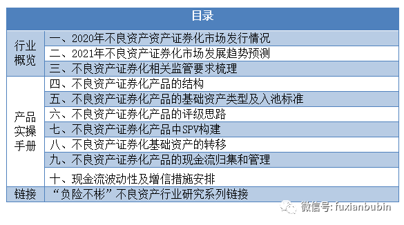 2021年2月3日,招商銀行在中債網披露“‘招銀和萃’系列不良資產支持證券注冊申請報告”,注冊總金額為25億元,基礎資產類別為不良貸款(非循環資產)。2021年2月4日,浦發銀行在中債網披露“‘浦鑫歸航’系列不良貸款資產支持證券注冊申請報告”,注冊總金額為25億元,基礎資產類別為不良貸款,其中注冊信用卡不良貸款資產支持證券23.5億元,注冊個人消費不良貸款資產支持證券1.5億元。掀開2021年不良資產證券化產品市場行業大戲。歷史是面照向未來的鏡子,有鑒于此,本期對2020年不良資產證券化市場進行整體回顧,并對日趨成熟的不良資產證券化業務重點環節進行拆分解讀,以觴讀者。