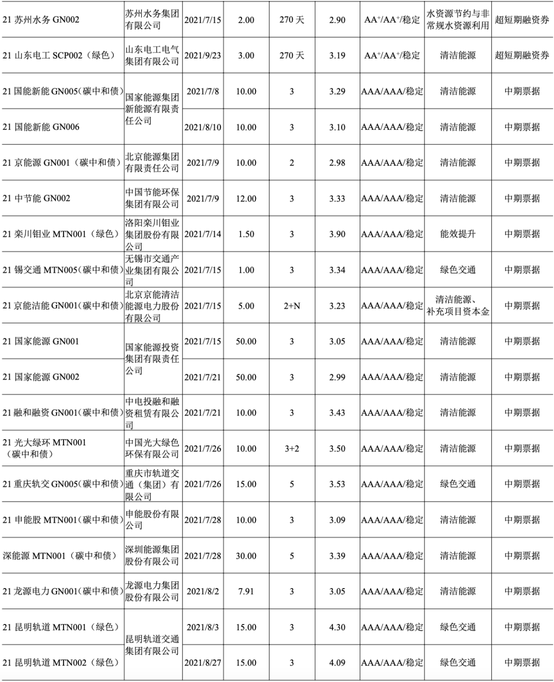 2021年8月31日,南方電網(wǎng)公司發(fā)行“南網(wǎng)融資租賃公司2021年度融資租賃第一期綠色資產(chǎn)支持商業(yè)票據(jù)(ABCP)”,發(fā)行規(guī)模16億元,票面利率2.58%,發(fā)行期限120天,募集資金將用于風(fēng)力和光伏發(fā)電項目。該債券系全國首只公募碳中和資產(chǎn)支持商業(yè)票據(jù),據(jù)綠色評估機構(gòu)測算,本期票據(jù)募集資金用于碳減排項目,將實現(xiàn)年減碳排量114.47萬噸。(摘自中國新聞網(wǎng),2021年8月31日)