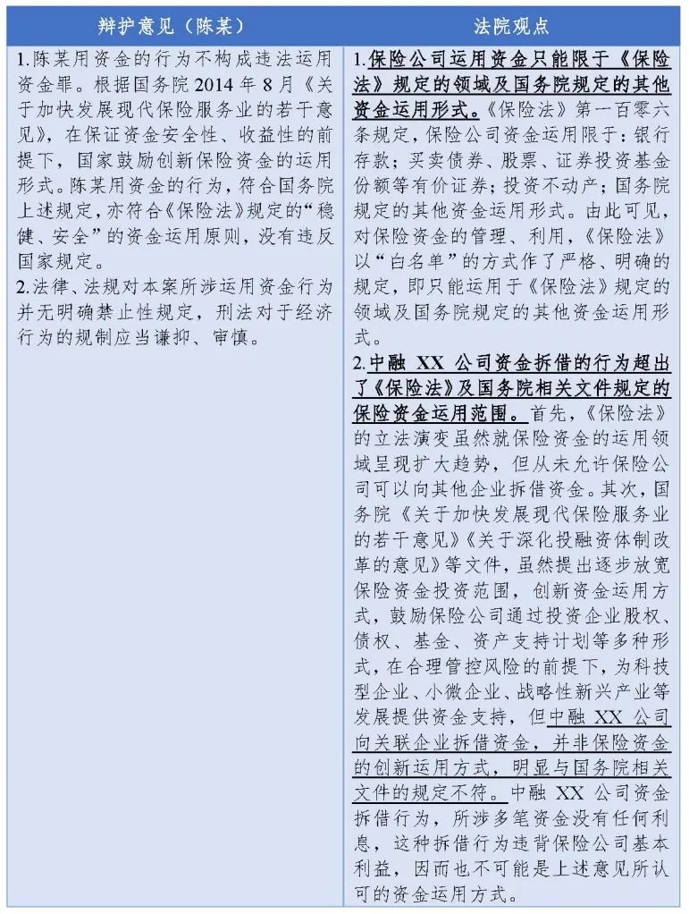 在“胡某某等案”中,法院判定中融XX公司向關(guān)聯(lián)企業(yè)資金拆借的行為超出了《保險(xiǎn)法》及國(guó)務(wù)院相關(guān)文件規(guī)定的保險(xiǎn)資金運(yùn)用范圍。