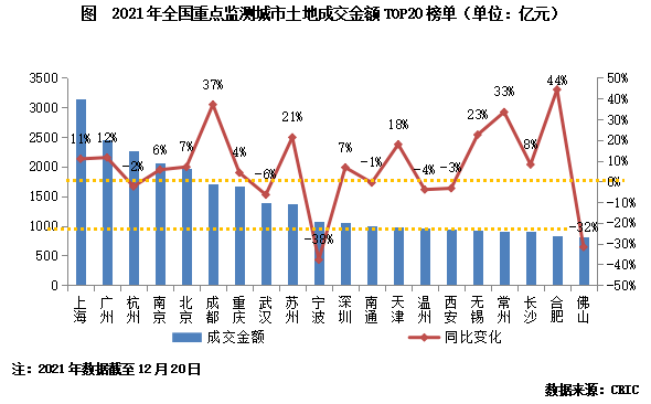 2、上海成交金額蟬聯(lián)榜首,合肥漲幅居于TOP20首位(節(jié)選)
