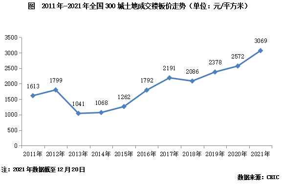 1、整體地價:地價再創(chuàng)歷史新高,增至3069元/平方米