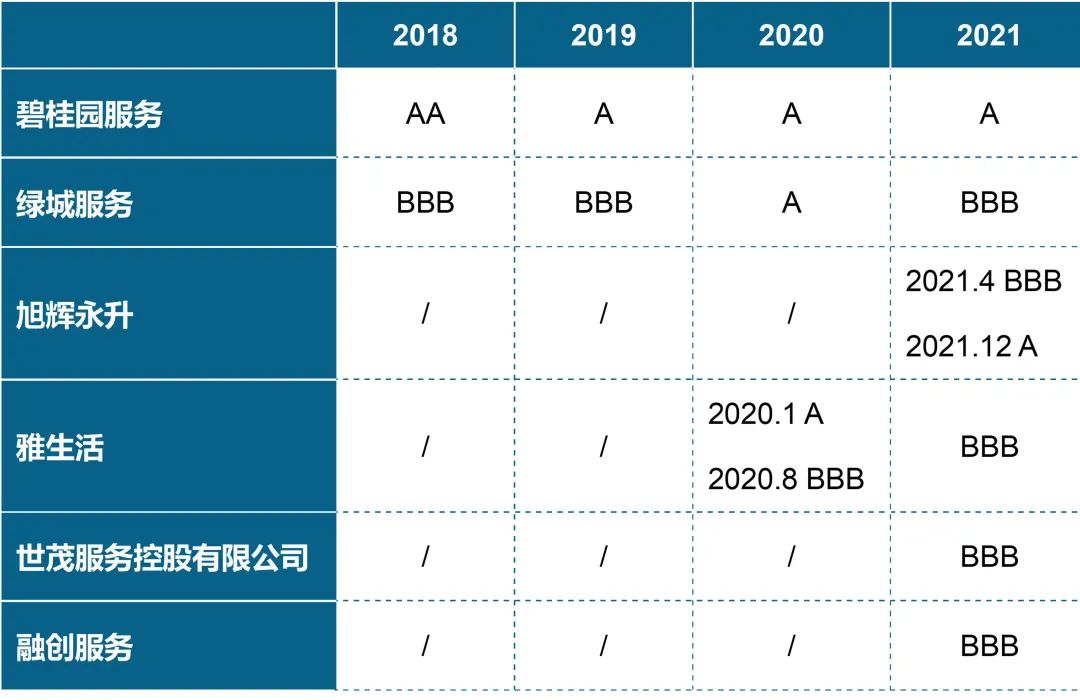 目前40多家港股上市物企中僅少數獲得了MSCI評級。根據MSCI官網,對6家港股上市物企評級結果整理如下: