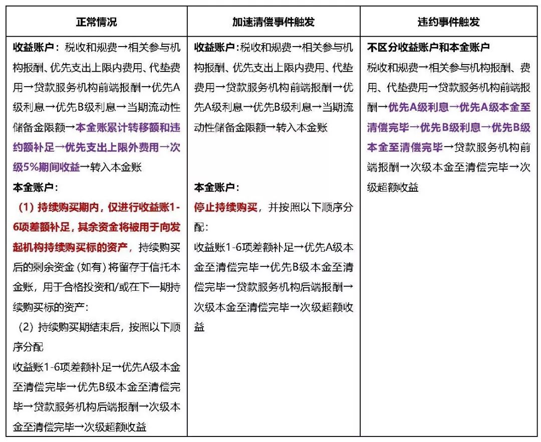 加速清償事件和違約事件觸發(fā)后的現(xiàn)金流分配順序