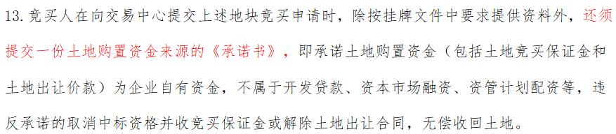 根據(jù)目前的招拍掛政策,大部分地區(qū)的國(guó)土、自然資源等部門都會(huì)在招拍掛公告中明確要求競(jìng)買人必須承諾保證金和土地出讓價(jià)款為自有資金,其中個(gè)別地區(qū)的國(guó)土部門還會(huì)穿透核查競(jìng)拍主體的資金來(lái)源: