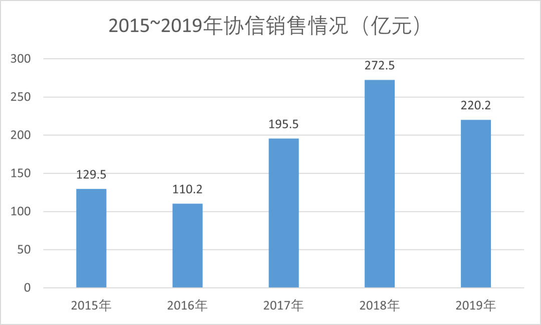 也正是從2015年開始,協信進入了銷售瓶頸期,2015年至2018年銷售規模徘徊在100億元至300億元。這正是因為,協信項目儲備構成中辦公、商業等占比高,住宅類產品占比較低,去化周期偏長。