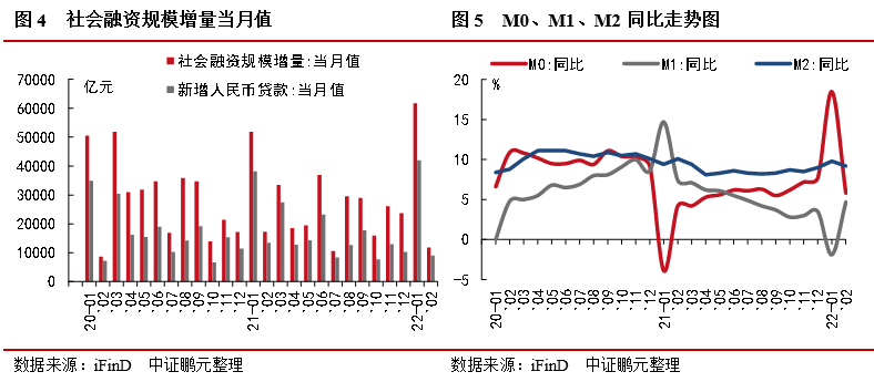 1月社融大幅超預(yù)期,2月出現(xiàn)階段性下滑,應(yīng)當(dāng)理性看待,不應(yīng)太悲觀。原因一是總基調(diào)仍是穩(wěn)增長(zhǎng)和寬信用,決心不改。二是2月數(shù)據(jù)走弱也受去年同期高基數(shù)影響,21年2月新增信貸數(shù)據(jù)是歷史高點(diǎn)。三是較往年情況,1月往往有開(kāi)門(mén)紅的需要,2月數(shù)據(jù)大部分情況不及預(yù)期。四是綜合1-2月來(lái)看,2022年1-2月累計(jì)新增社融7.36萬(wàn)億元,同比仍多增4,499億元。五是2月PMI生產(chǎn)經(jīng)營(yíng)活動(dòng)預(yù)期指數(shù)為58.7%,較上月大幅增加1.2個(gè)百分點(diǎn),穩(wěn)增長(zhǎng)預(yù)期強(qiáng)。