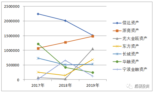 從整體上看,18年持牌AMC受讓銀行資產體量最小;從個體上看,信達資產、華融資產逐年減少 ;浙商資產、東方資產、光大金甌資產逐年增加,尤其光大金甌資產和東方資產19年增加最顯著。