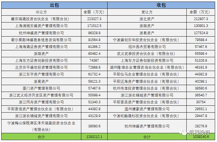 1、三級市場投資機構收包出包排行榜