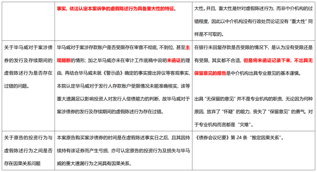 通過上述分析不難發(fā)現(xiàn),由于構成欺詐發(fā)行,在五洋債中中介機構其實無法就損失賠償范圍作出有效的抗辯,只能就過錯程度作出抗辯,恐怕這也是兩個案件形成如此極端結果的原因之一。