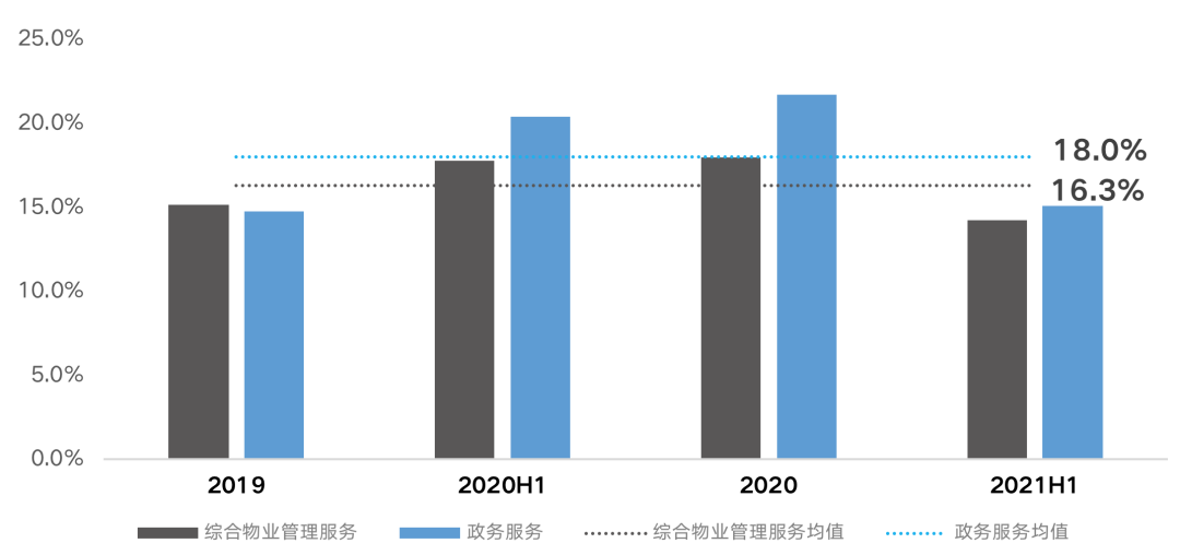 與卓越商企服務類似的企業還有特發服務,其2021年中報披露,綜合物業管理服務毛利率水平為14.3%。2019到2021H1平均毛利率為16.3%。