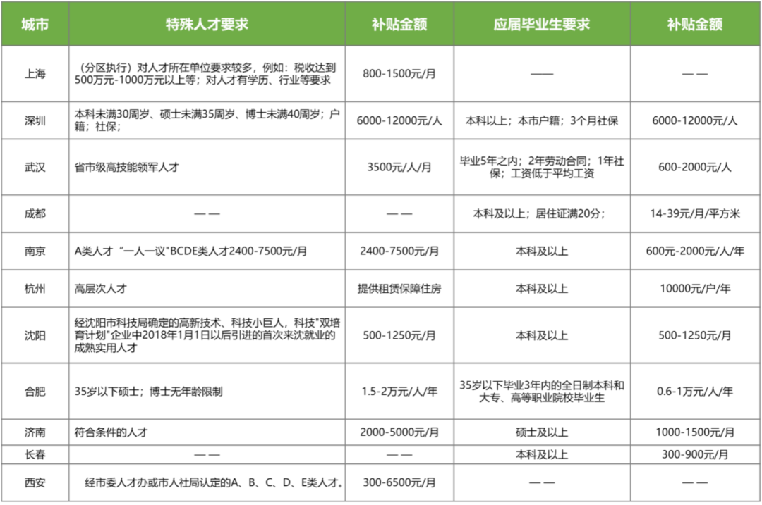 部分城市引進(jìn)人才租賃補(bǔ)貼方案匯總