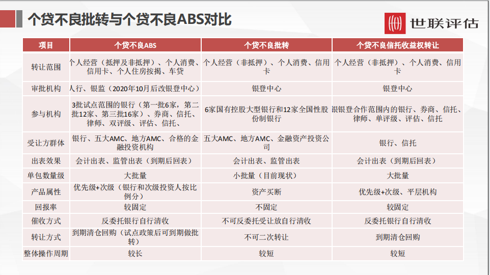 個貸不良批轉(zhuǎn)與個貸不良ABS對比