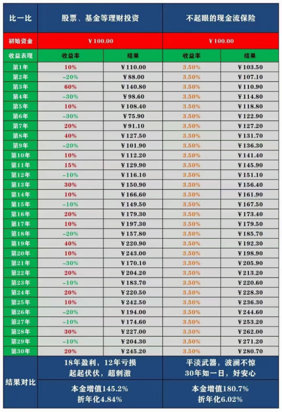 是,運氣好是能在短期內(nèi)獲得不錯的收益,但時間拉長,未必比得上年金險的穩(wěn)健增值。