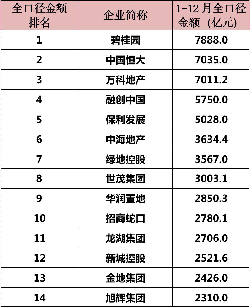 2020年度中國房地產企業銷售全口徑榜