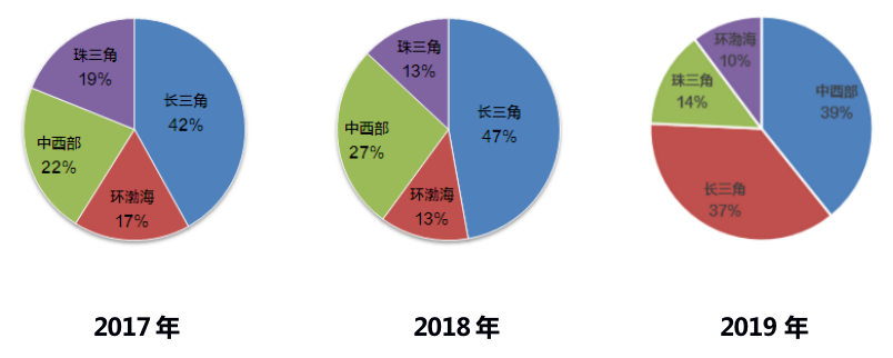 圖:2017-2019年招商蛇口各區域新增土儲占比