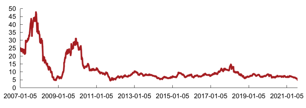 備注:1)恒生中國內地地產指數的推出主要是為了反映前10只市值最大、流通性最高,在香港上市但主要營業收入來自中國內地的房地產股票表現。當前成分股共10只,分別為:中國金茂、中國海外發展、世茂集團、龍湖集團、華潤置地、龍光集團、碧桂園、中國恒大、碧桂園服務、融創中國
