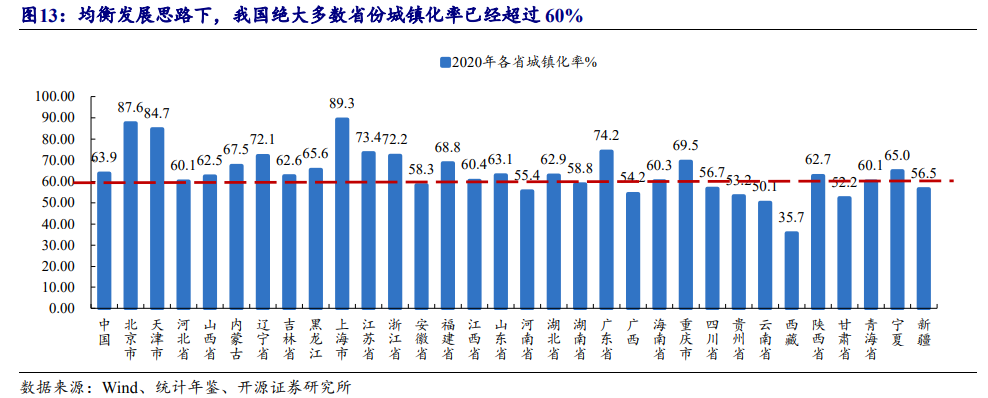 第四,城市化進入后半段,即便不考慮人口出生、年齡結構問題,韭菜也越來越少。如下圖,我們看不少省份都過了60%的城鎮化率。